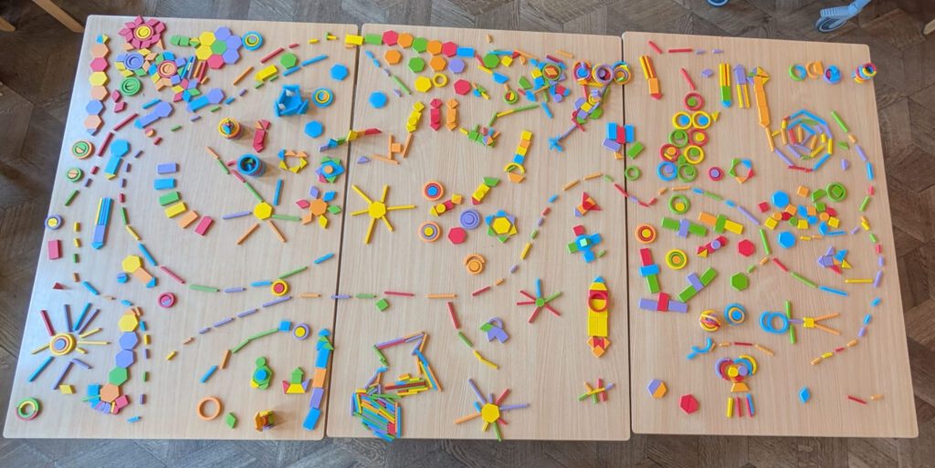 Auch das Weltall wurde an diesem Tag zum Thema. Gemeinsam legten die Kinder mit verschiedenen Legematerialien das Universum nach. Sterne, Planeten und Galaxien entstanden aus bunten Formen und regten die Fantasie der Kinder an.