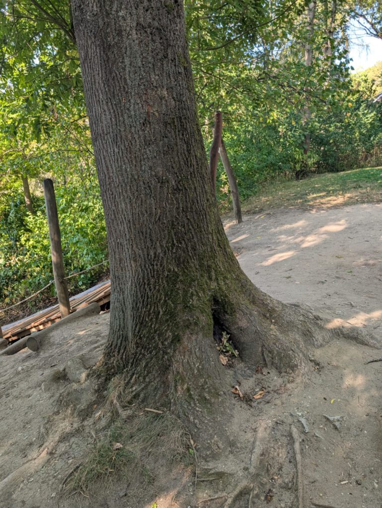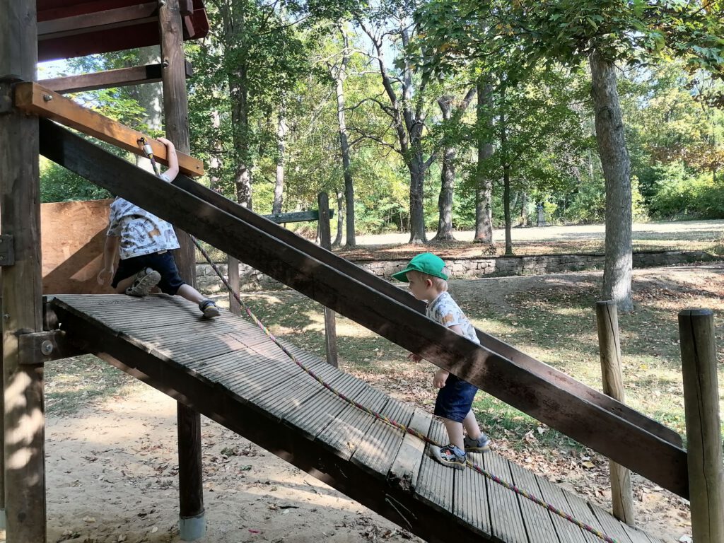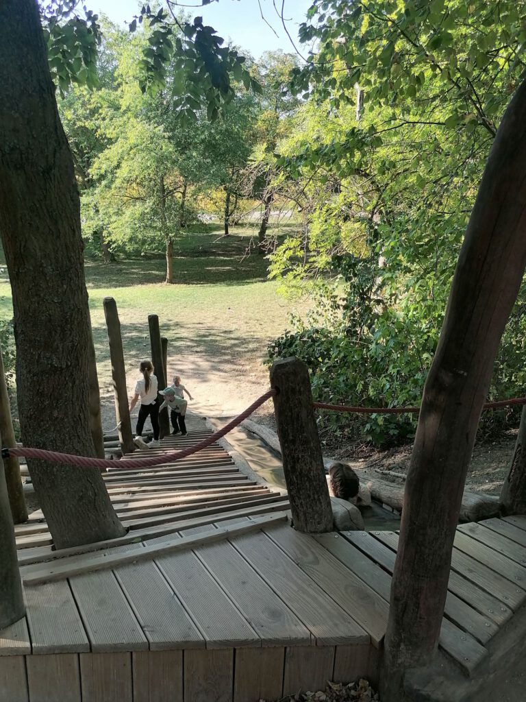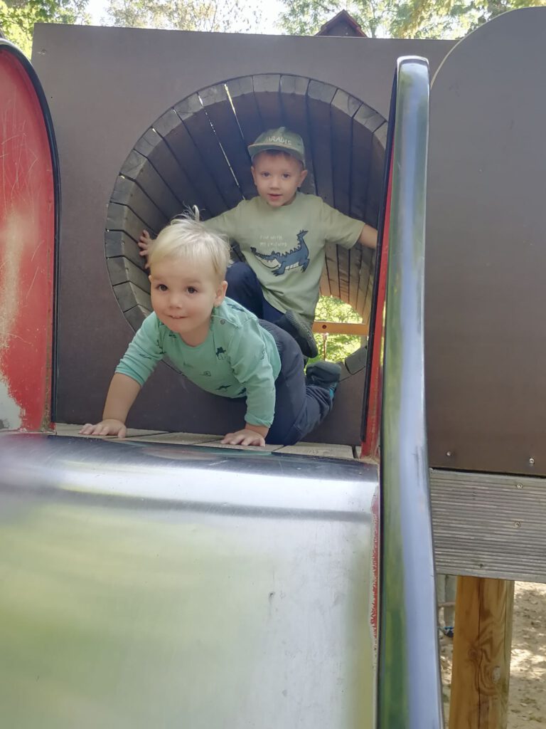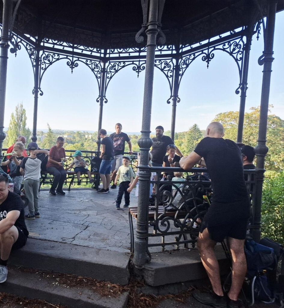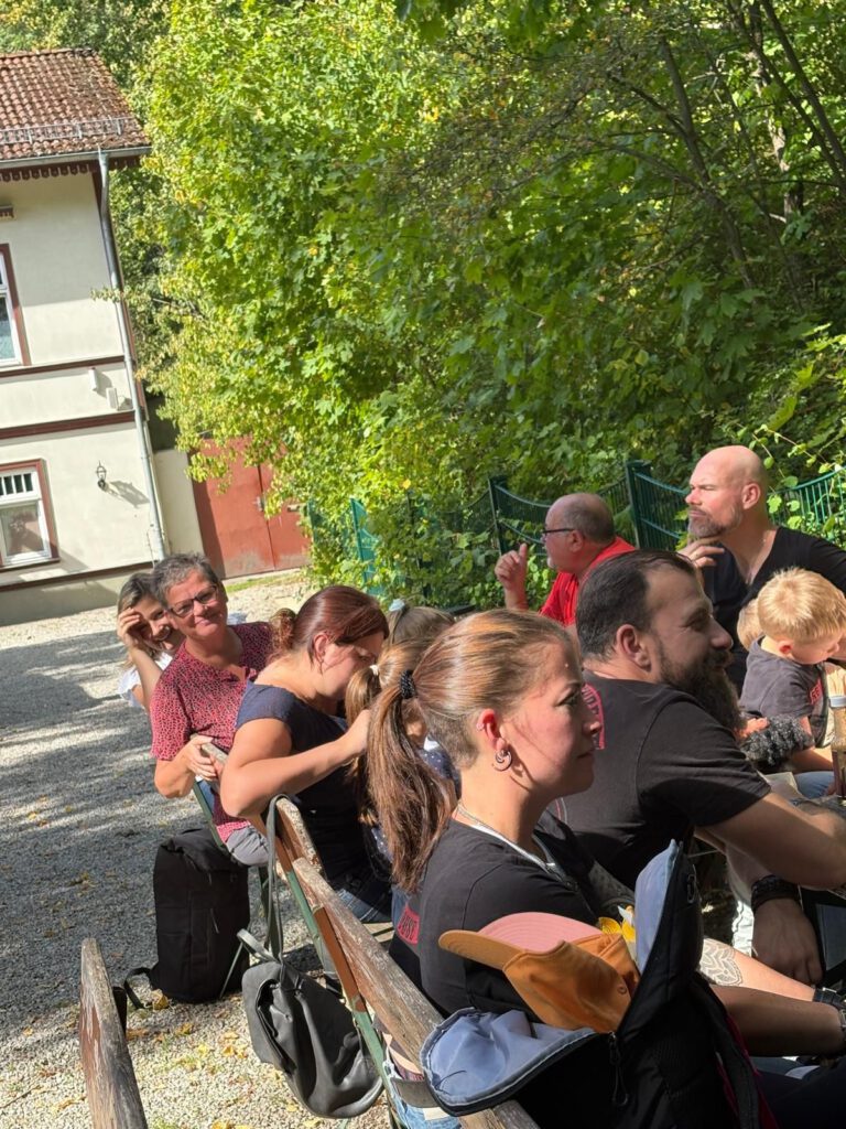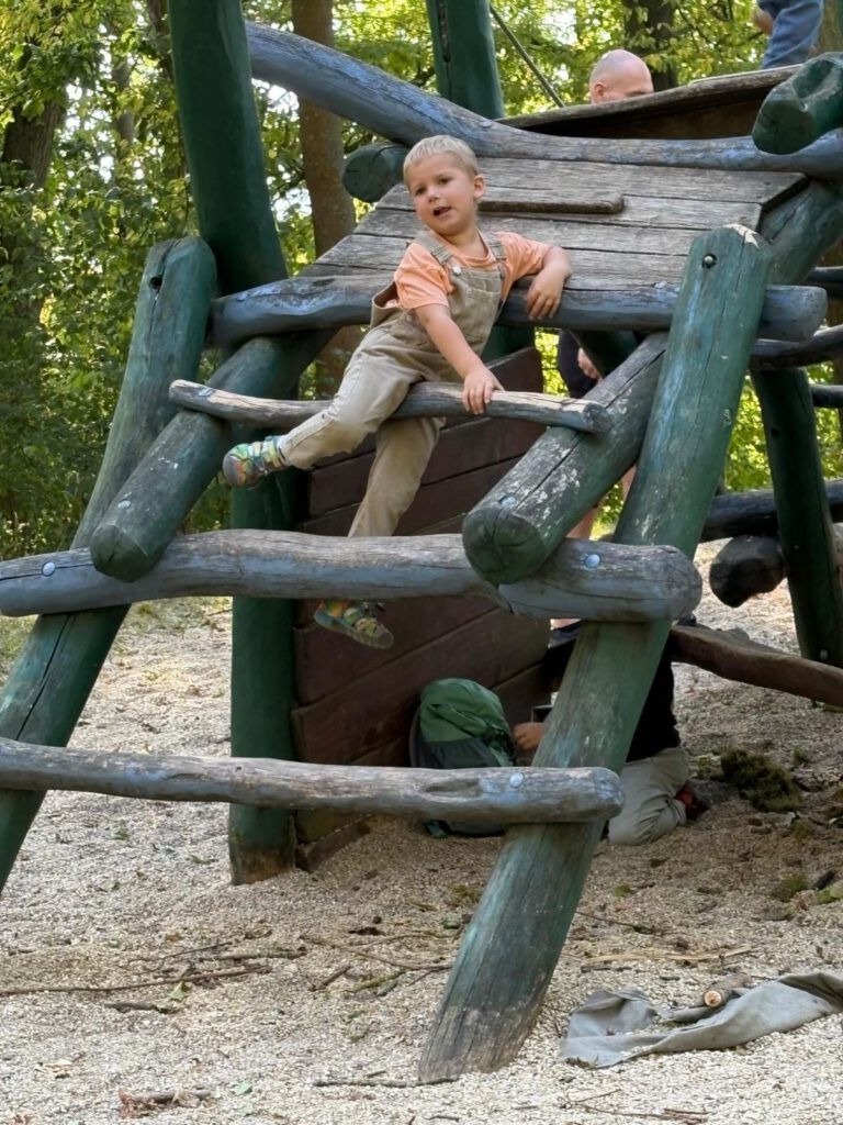 Frisch gestärkt ging es dann weiter durch die herbstliche Natur. Der Weg führte die Gruppe schließlich zur zweiten Rast am Spielplatz im Berggarten. Hier konnten sich die Kinder nach Herzenslust austoben, während die Erwachsenen die Sonne und die gemeinsame Zeit genossen.