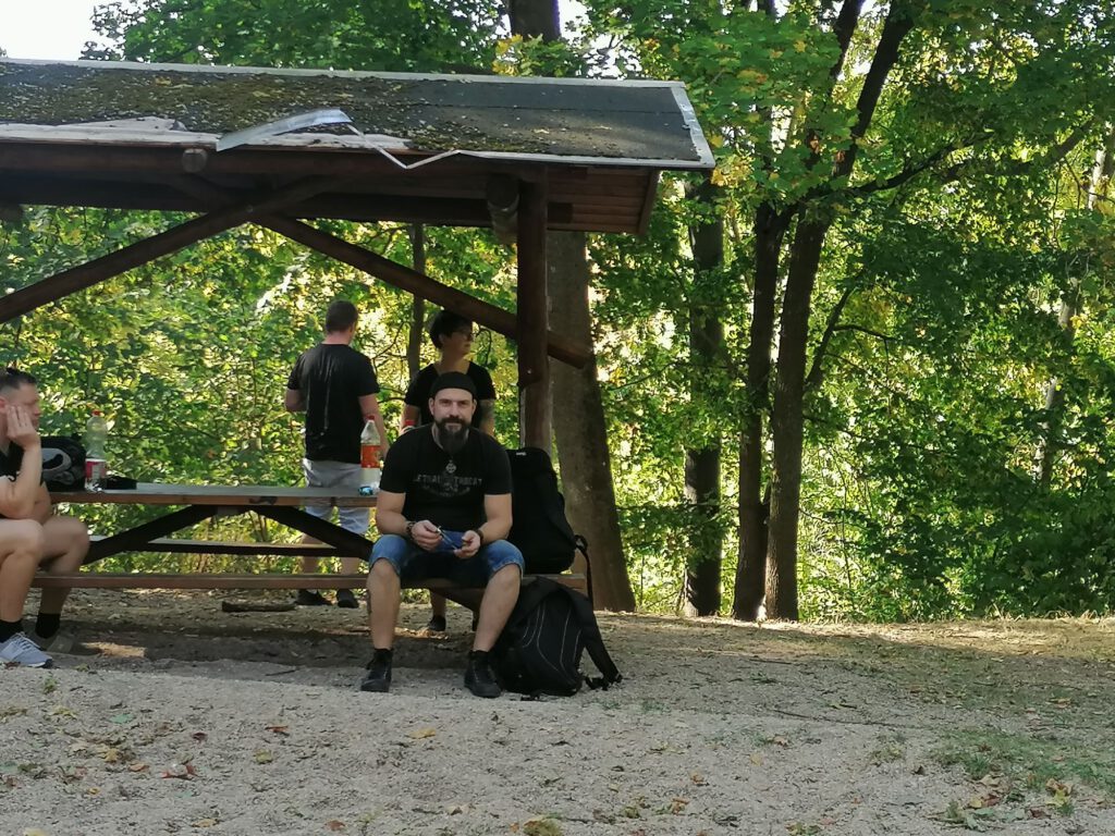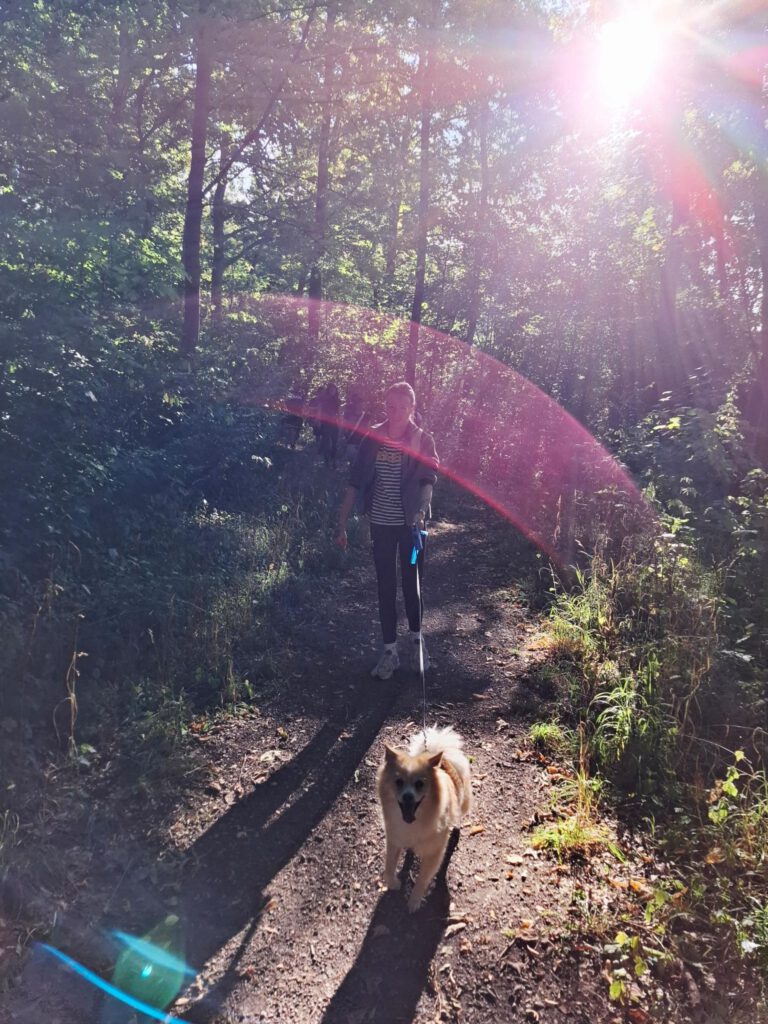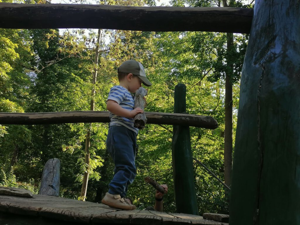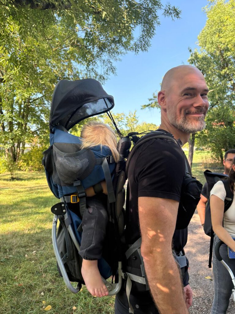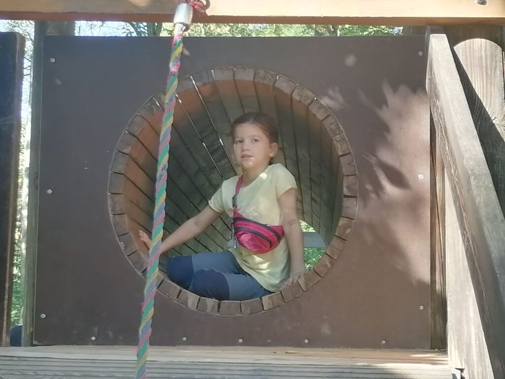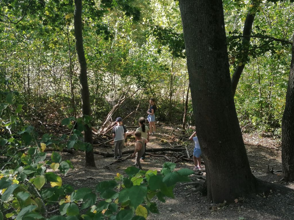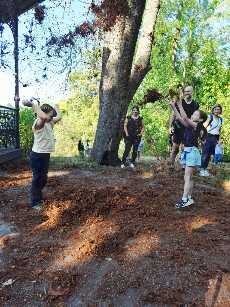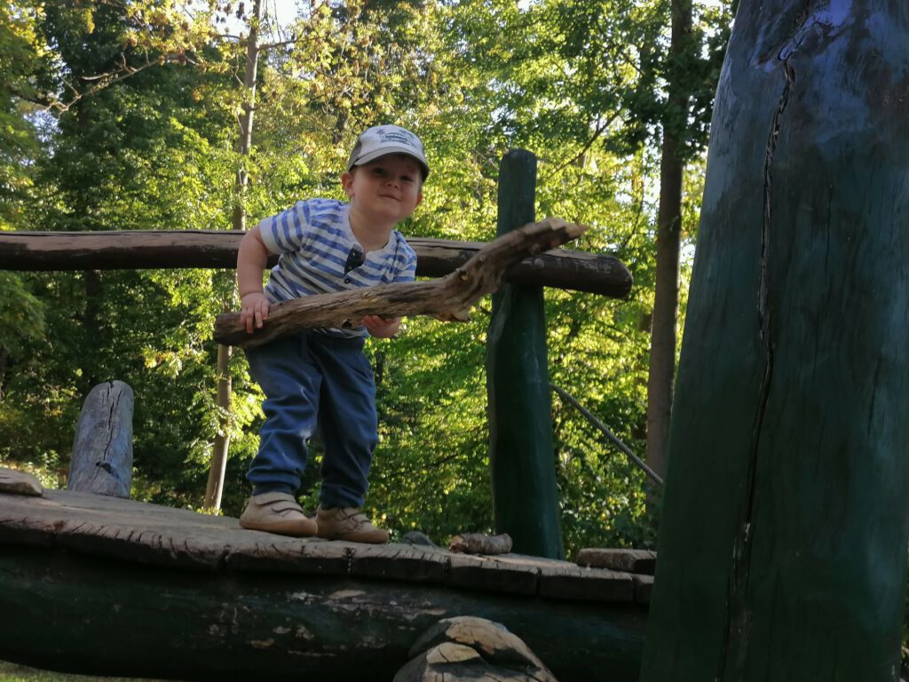 Frisch gestärkt ging es dann weiter durch die herbstliche Natur. Der Weg führte die Gruppe schließlich zur zweiten Rast am Spielplatz im Berggarten. Hier konnten sich die Kinder nach Herzenslust austoben, während die Erwachsenen die Sonne und die gemeinsame Zeit genossen.
