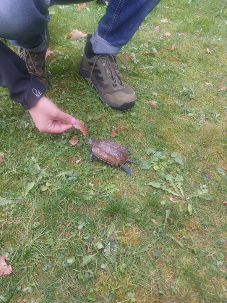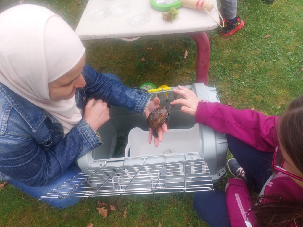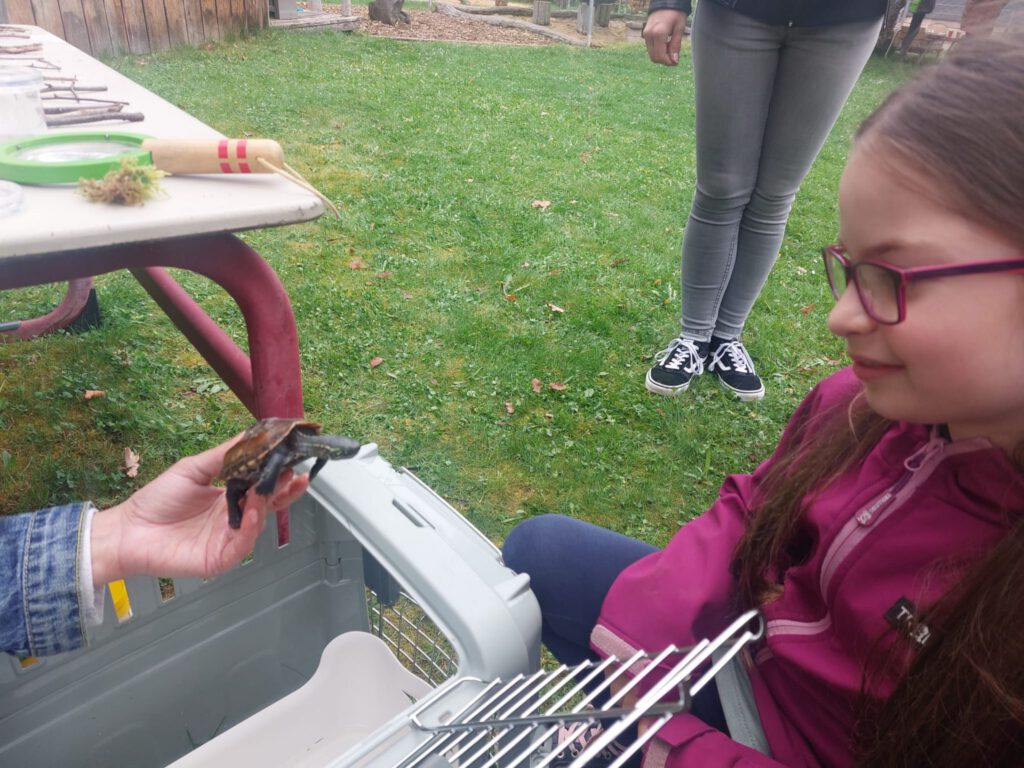 Und es gab heute auch lebendigen Besuch…. Eine Wasserschildkröte zum Anfassen.