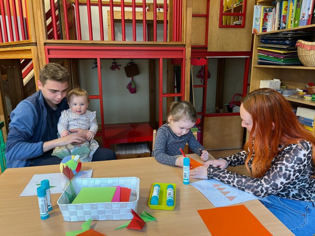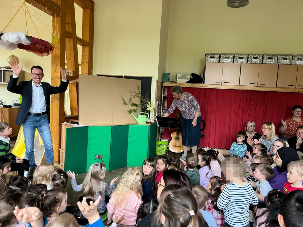 In verschiedenen Szenen zeigten sie den Kindern, wie Fröbel als neugieriger Junge die Natur liebte, später Lehrer wurde und schließlich den allerersten Kindergarten gründete. Mit viel Freude und bunten Requisiten erlebten die Kinder, wie wichtig Spiel, Kreativität und Gemeinschaft für das Lernen sind – ganz im Sinne von Fröbel selbst.