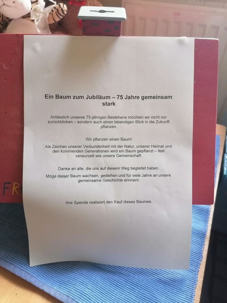 Unser Flohmarkt steht allen Familien zur Verfügung. Vom Erlös wollen wir anlässlich unseres 75.Geburtstag des  Kindergartens einen Baum kaufen und pflanzen.