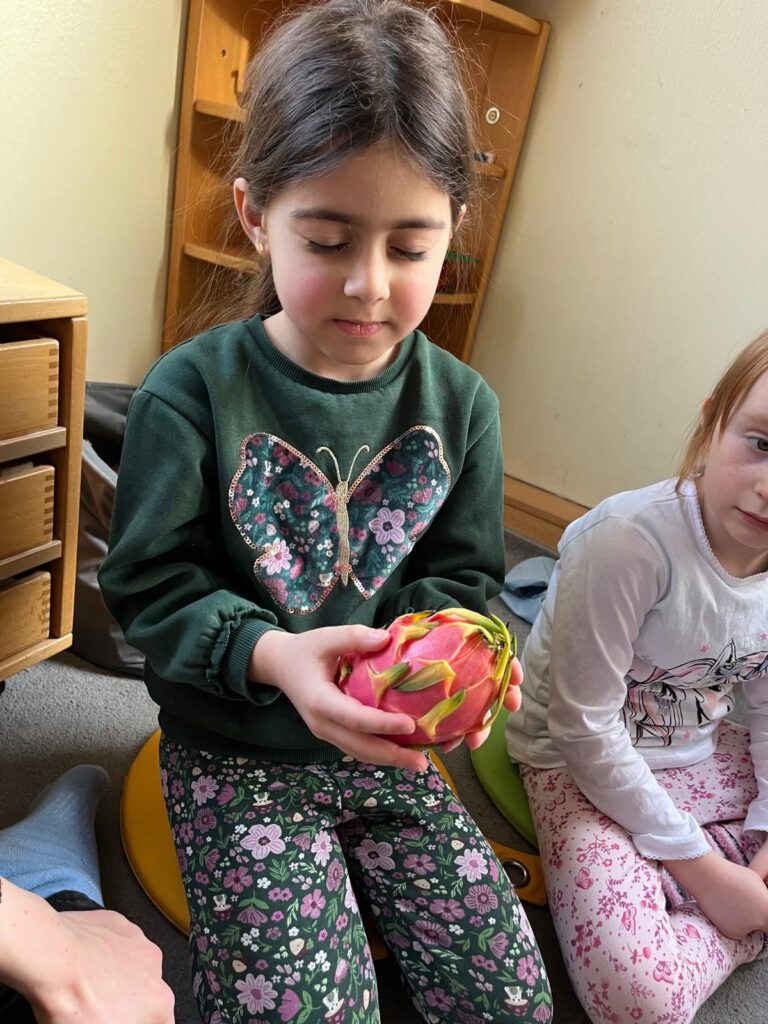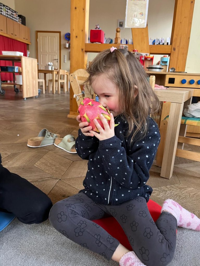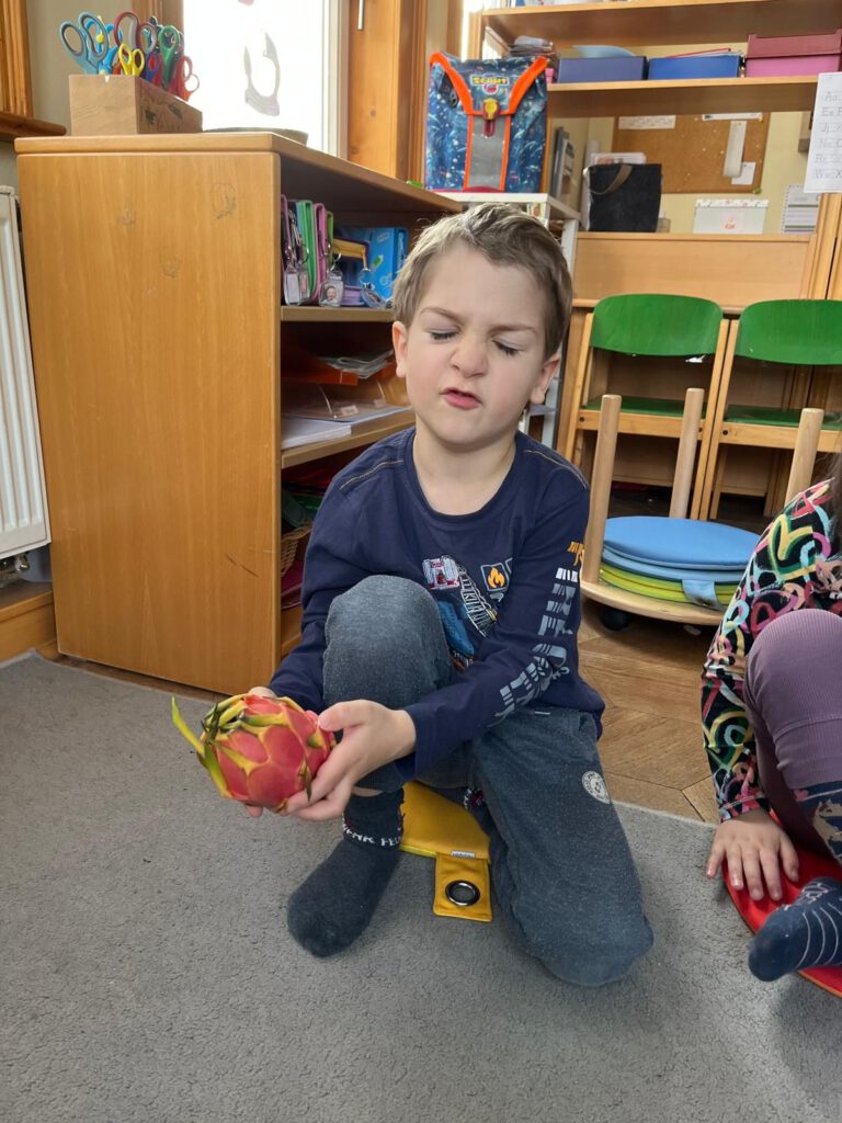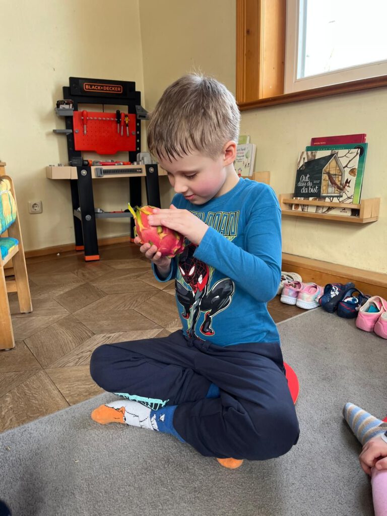 Für staunende Gesichter sorgte eine Drachenfrucht, die uns die Wachgruppe aus dem Supermarkt mitgebracht hatte. Schnell entstanden lebhafte Gespräche und spannende Vermutungen: