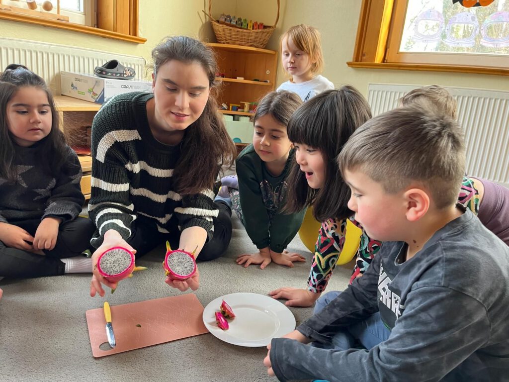 Gemeinsam stellten die Kinder Hypothesen auf, beschrieben ihre Beobachtungen und erweiterten spielerisch ihren Wortschatz sowie ihr Weltwissen. Das anschließende Probieren erforderte bei manchen Mut – wurde jedoch für viele zu einem besonderen Geschmackserlebnis.
