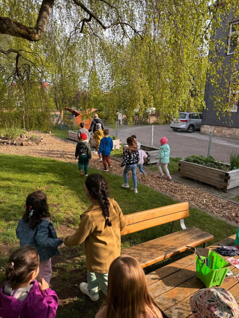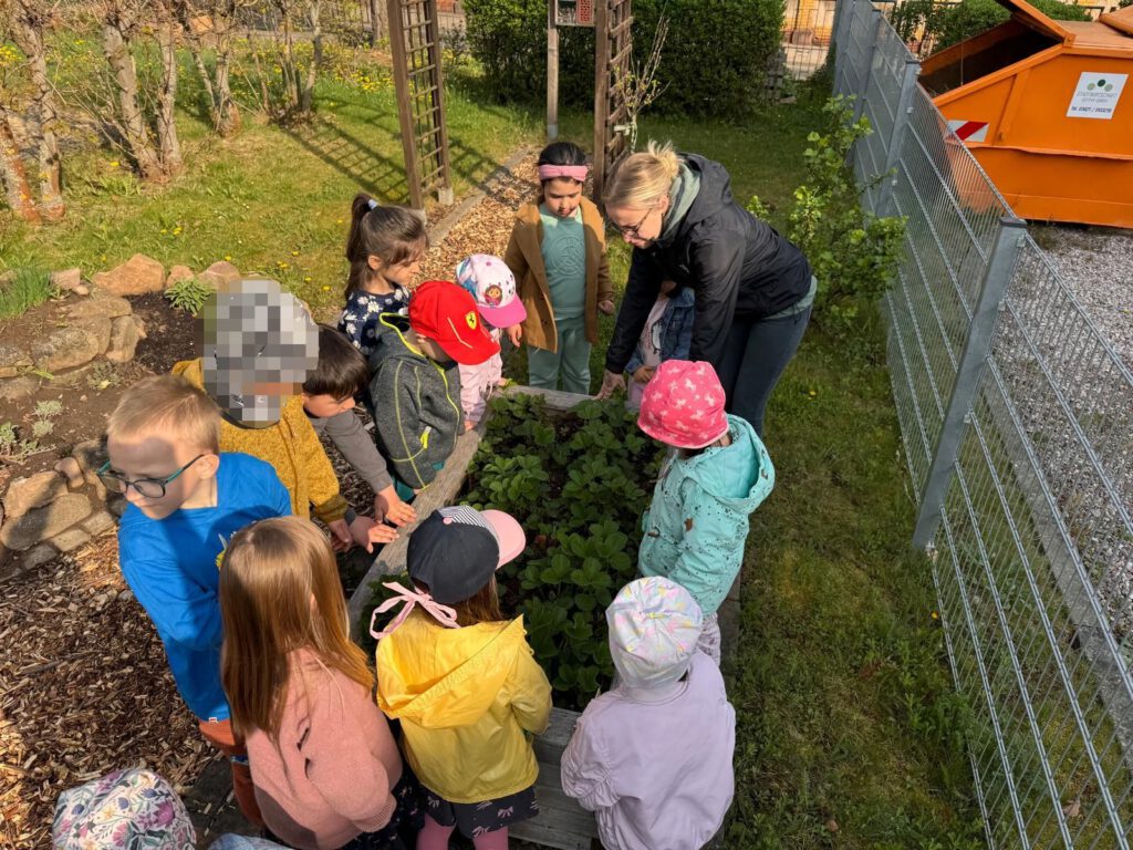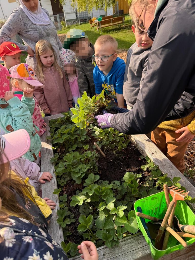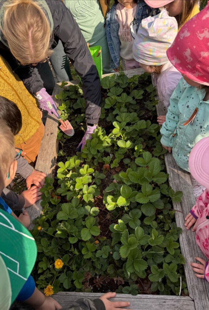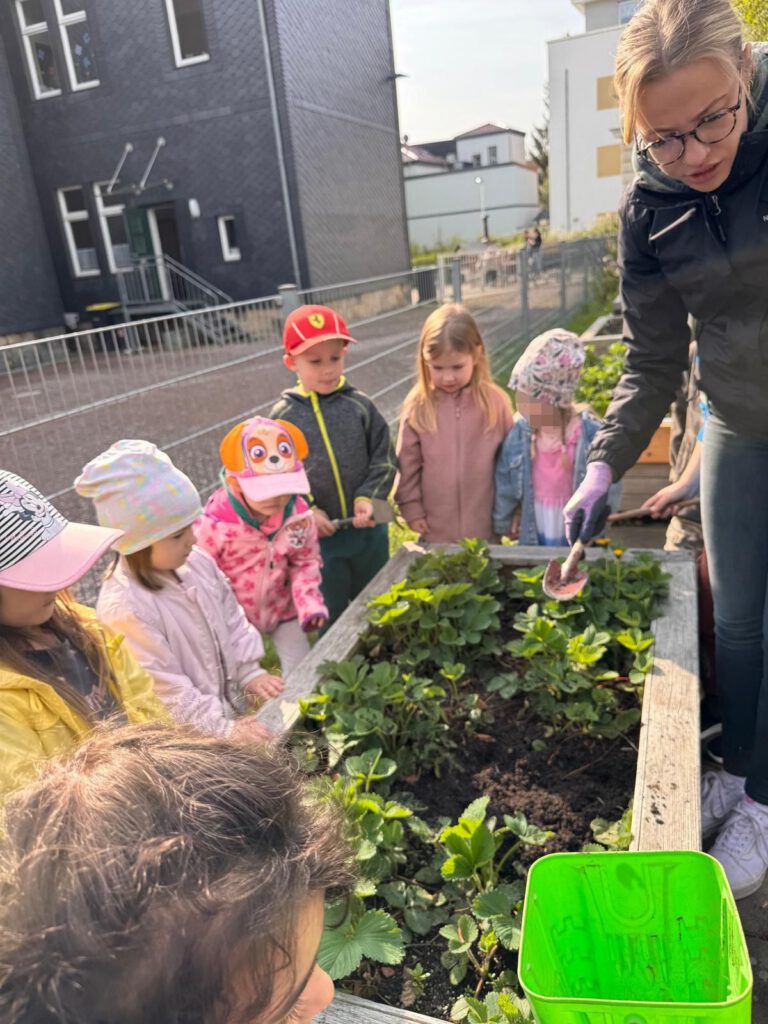 Die Erdbeerpflänzchen wurden vorsichtig aus dem Hochbeet entnommen, begutachtet und können am Freitag zum Fühlingsfest liebevoll in eigene Töpfe oder Beete gesetzt werden und einen persönlichen Platz bei den Kindern zu Hause finden. So hat jedes Kind nun seine eigene Pflanze, um die es sich kümmern darf. Nebenbei erfuhren sie spielerisch etwas über Wachstum, Wurzeln und den natürlichen Kreislauf des Lebens.