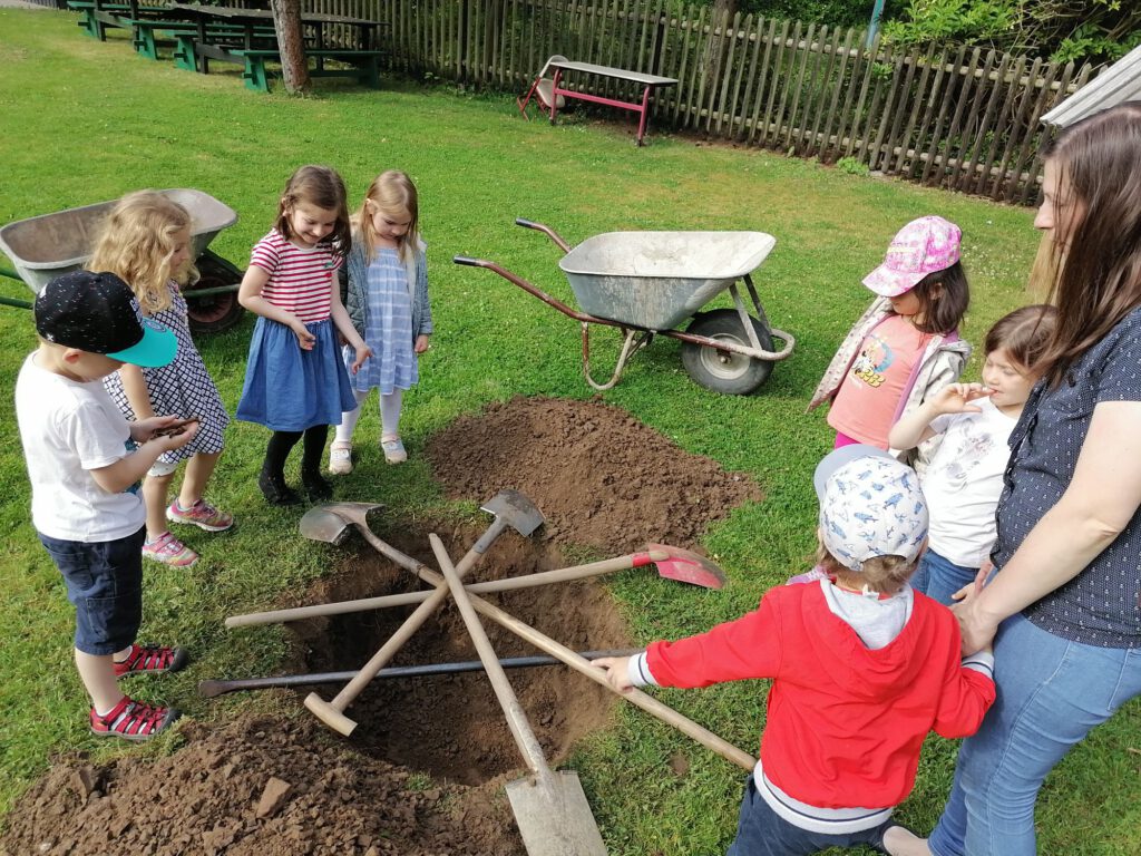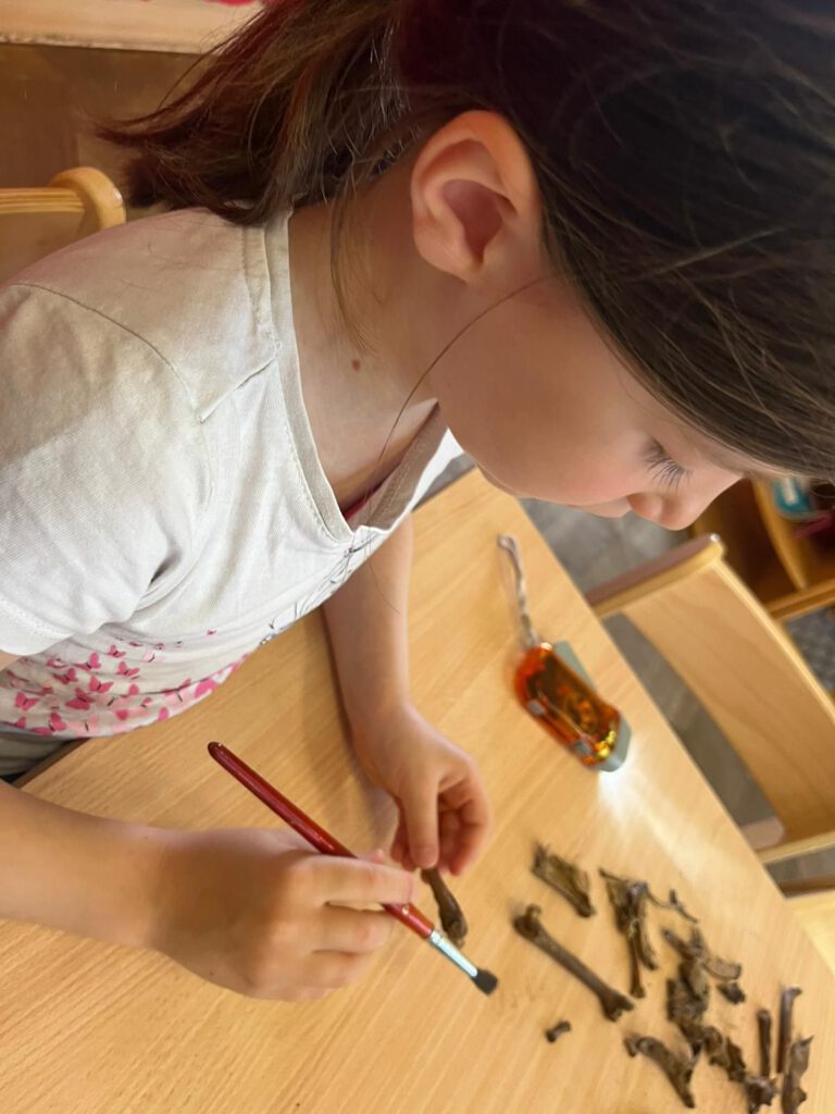Was für ein aufregender Tag! Beim Baum Pflanzen haben unsere Kinder eine erstaunliche Entdeckung gemacht: Knochen! Schnell war klar – hier steckt mehr dahinter. Sofort verwandelte sich der Garten in eine Ausgrabungsstätte, und unsere kleinen Forscher machten sich mit Eimern, Pinseln und viel Neugier ans Werk.