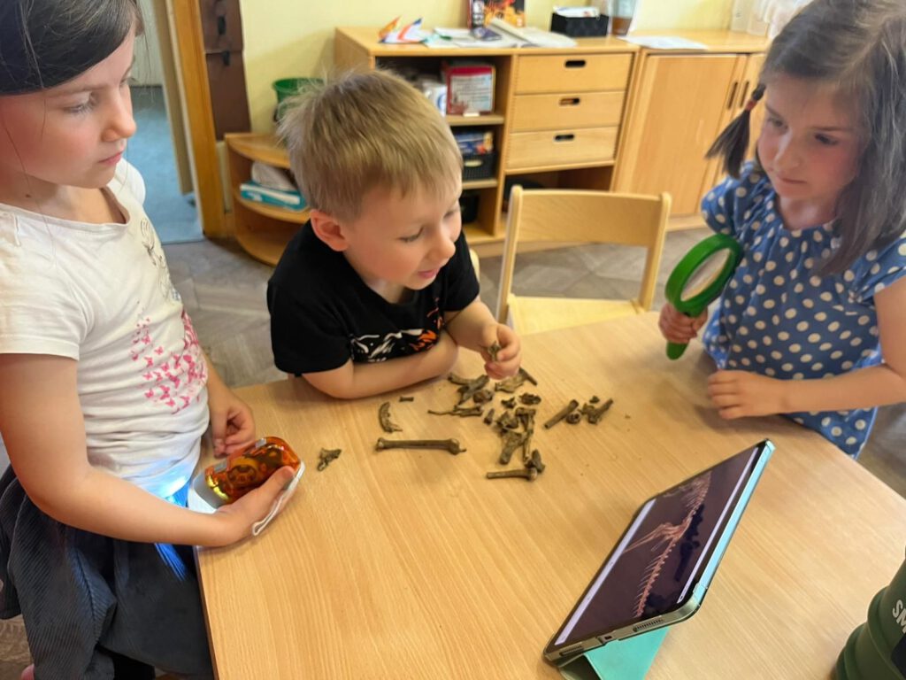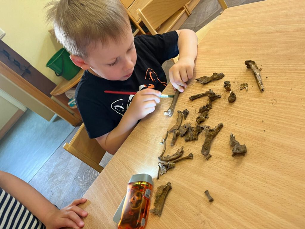 Um dem Rätsel auf die Spur zu kommen, haben wir Kontakt mit einem echten Paläontologen aufgenommen. In den nächsten Tagen wird er die Knochen gemeinsam mit den Kindern unter die Lupe nehmen und erklären, worauf man bei solchen Funden achten muss.