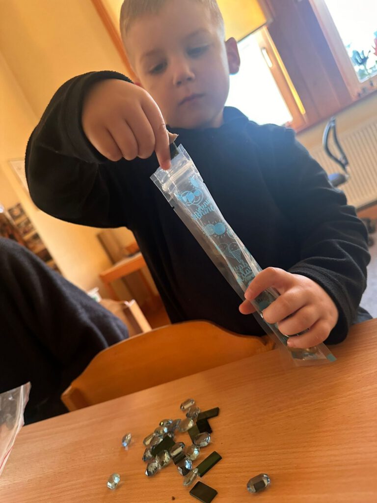 Mit viel Freude gestalteten die Kinder ihre kleinen Säckchen. Diese können nun helfen, wenn die Gefühle einmal zu groß werden. Ein Kind erklärte es sehr treffend: „Jetzt bin ich wütend – da kann ich das doll drücken.“ Das feste Drücken des Säckchens hilft dabei, die Wut herauszulassen und wieder ruhiger zu werden.