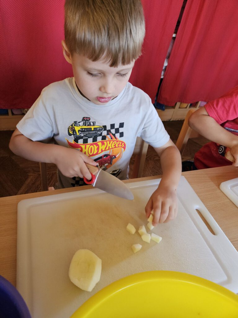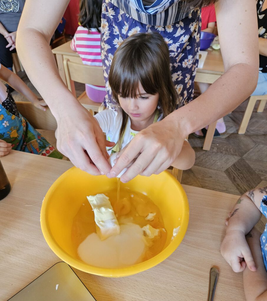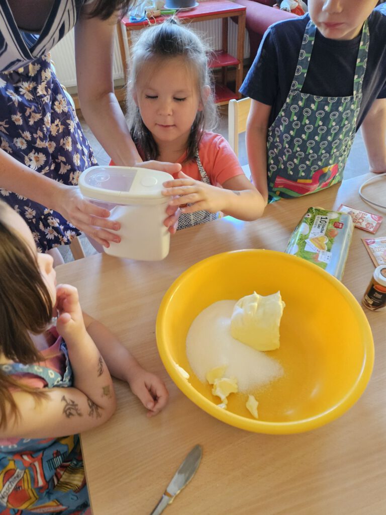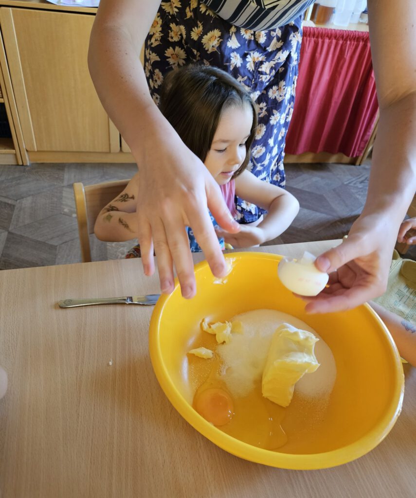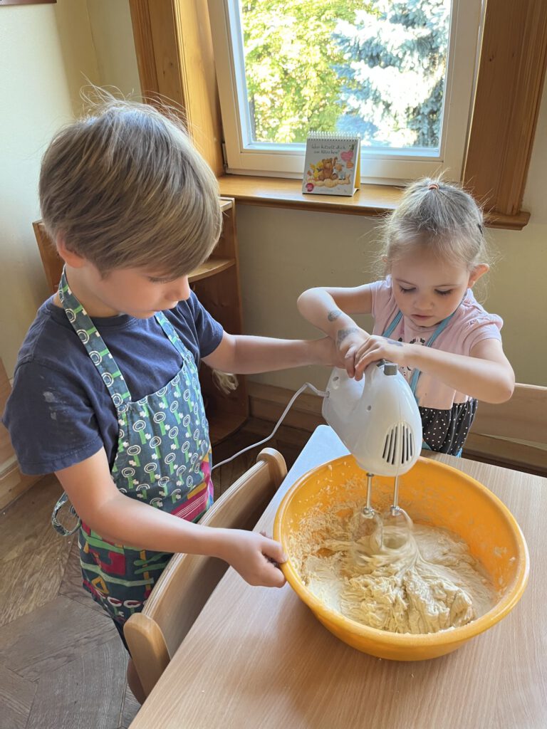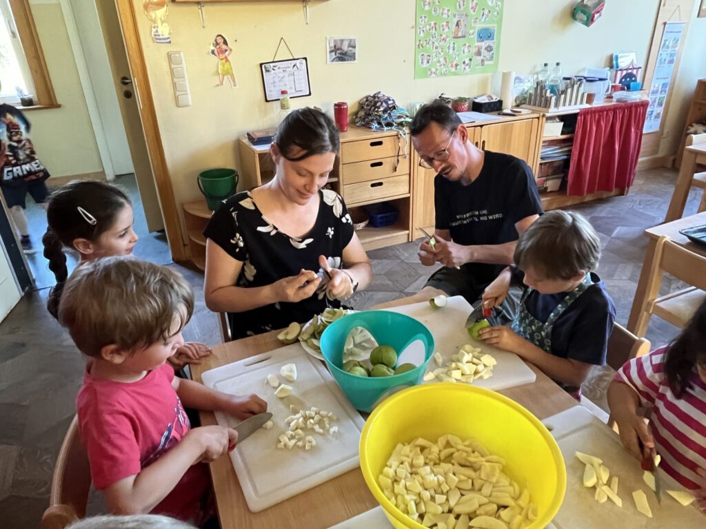 In unserer Küche wurde geschnippelt, gerührt und gelacht, bis der Apfelkuchen endlich im Ofen war. Der Duft zog durchs ganze Haus – und als er fertig war, gab es kein Halten mehr: