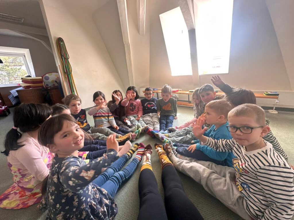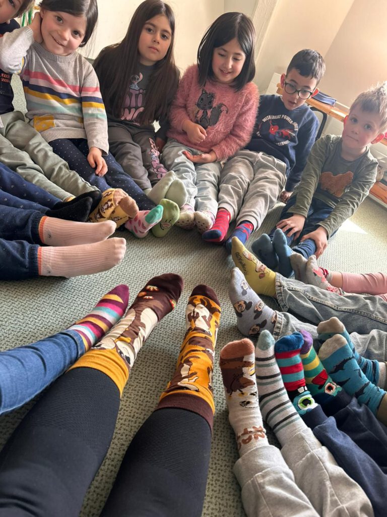 Mit kleinen Aktionen wie Spielen, Basteln oder einer „Socken-Modenschau“ wird das Thema kindgerecht und fröhlich vermittelt.