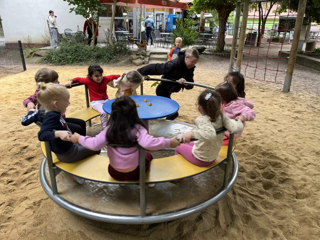 Im Tierpark gab es jede Menge zu sehen. Besonders viel Freude hatten die Kinder beim Beobachten der Erdmännchen, die sich flink und neugierig in der Sonne bewegten. Nach einer ausgiebigen Picknickpause konnten die Kinder sich auf dem Spielplatz austoben, bevor es am Nachmittag zum Kindergarten zurück ging.