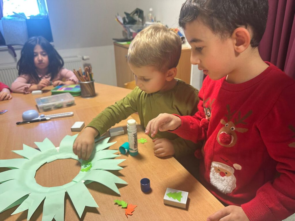 Gemeinsam basteln wir stimmungsvolle Dekorationen, kleine Geschenke und funkelnde Kunstwerke, die nicht nur unseren Gruppenraum verschönern, sondern auch Herzen erwärmen. Ob glitzernde Sterne, liebevoll gestaltete Karten oder selbstgemachte Adventsüberraschungen – jede Idee bekommt Raum und jede Hand trägt ein Stück Weihnachtszauber bei.