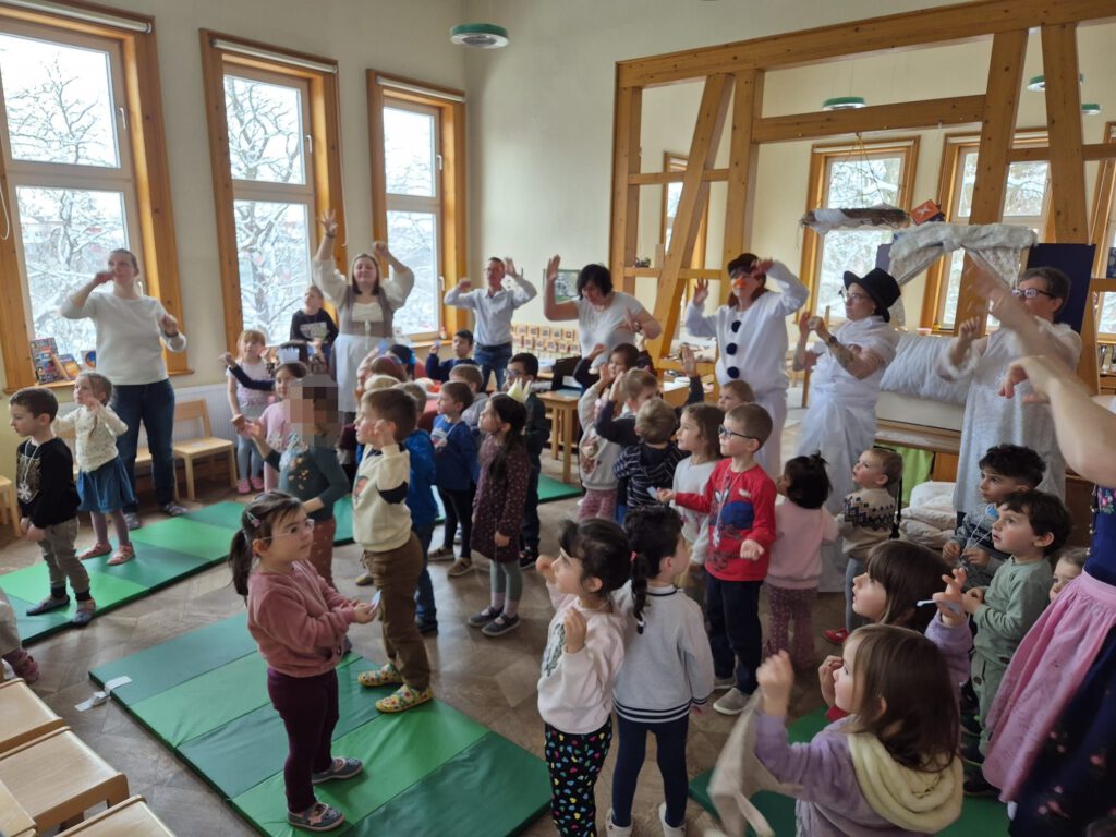Mit viel Fantasie, Musik und Herz gestaltete das Team des Fröbel Kindergartens ein zauberhaftes Winterkonzert für die Kinder. In eine liebevoll winterlich geschmückte Atmosphäre eingebettet, nahm ein fröhlicher Schneemann die kleinen Zuschauer mit auf eine abwechslungsreiche Reise durch die kalte Jahreszeit und führte durch das gesamte Programm.