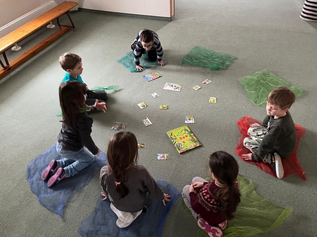 Gemeinsam rekonstruierten die Kinder die Geschichte, ordneten die Bilder neu und erklärten, warum welche Karte an welche Stelle gehört. Dabei stärkten sie ihre Erzählkompetenz, ihr logisches Denken und ihren Wortschatz. Außerdem übten sie sich im Perspektivwechsel und im aufmerksamen Zuhören.