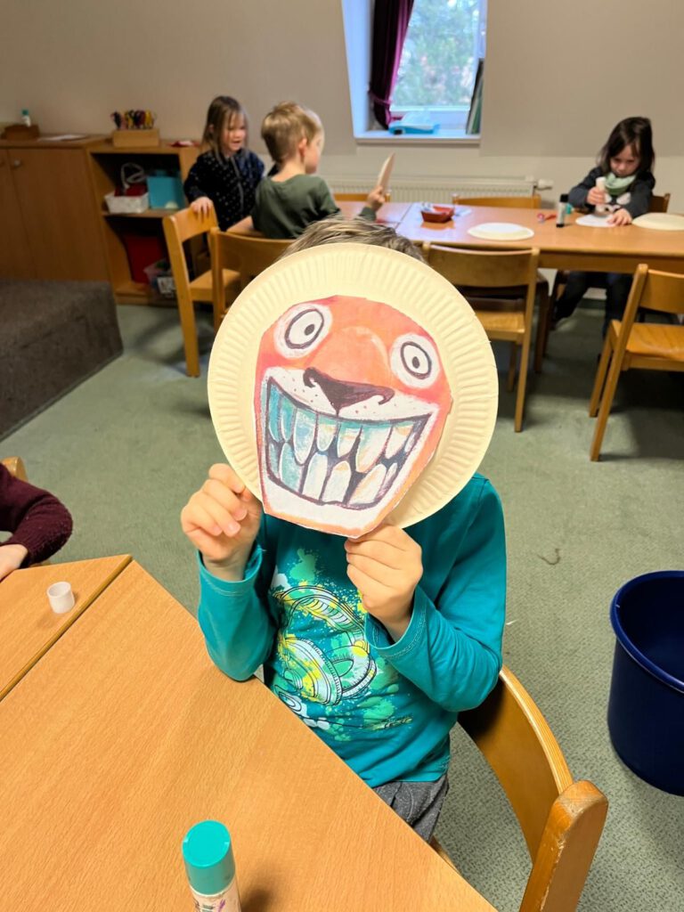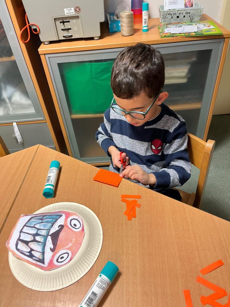 Natürlich durfte auch der Löwe aus unserer Geschichte nicht fehlen. Jedes Kind gestaltete seine eigene Löwenmaske – mit Farben, Formen und einer beeindruckenden Löwenmähne.
